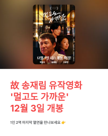 가슴 아픈 소식이지만, 동시에 그를 다시 만날 수 있다는 반가운 소식이기도 해요. 故 송재림의 유작영화 '멀고도 가까운'이 오는 12월 3일 전국 극장에서 개봉합니다.