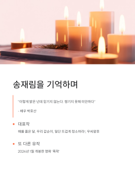 밝은 미소로 우리 곁에 있던 송재림을 다시 만날 수 있는 소중한 기회가 될 거예요. 12월 3일, 극장에서 그의 마지막 연기를 꼭 만나보세요.