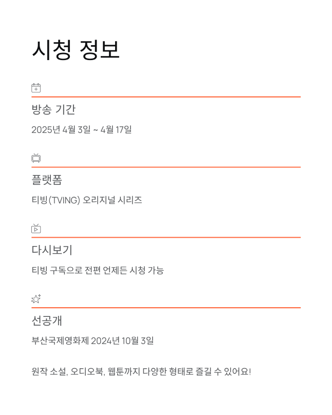 • VOD: 티빙 구독을 통해 언제든 시청 가능