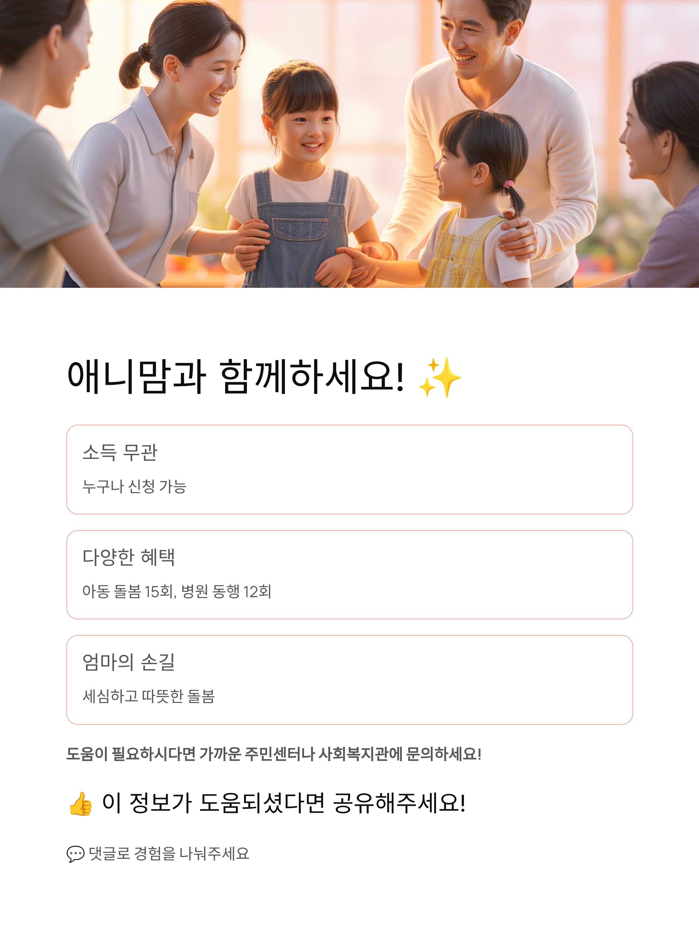 다음 글에서는 전국 지자체 무료 돌봄 서비스 총정리를 소개해드릴게요. 기대해주세요! 🎁