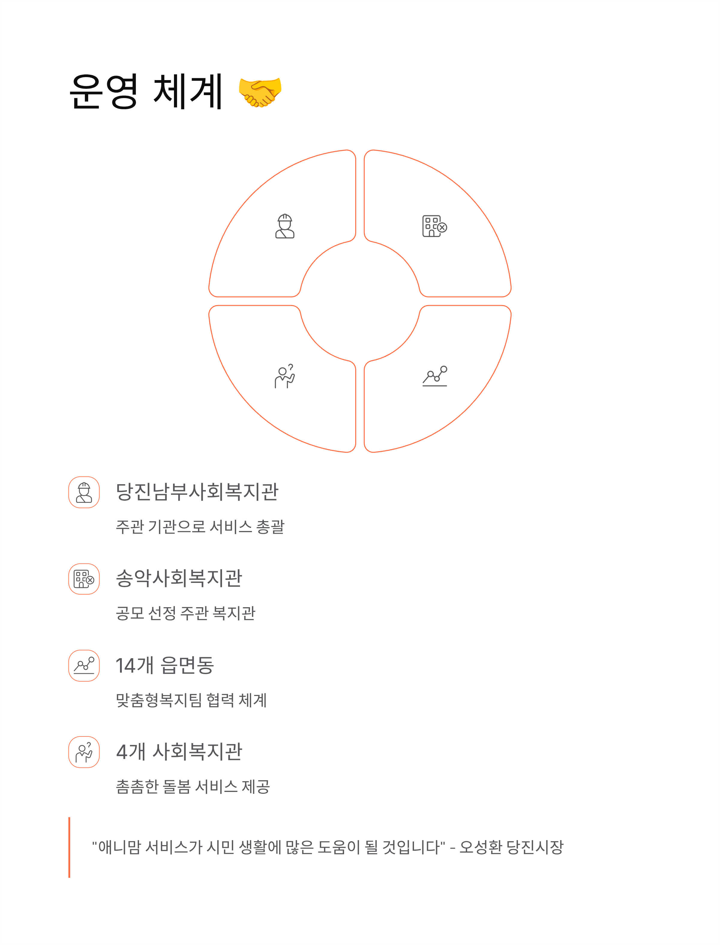 특히 14개 읍면동 맞춤형복지팀과 4개 사회복지관이 협력체계를 구축해서 촘촘한 돌봄 서비스를 제공하고 있어요. 어느 지역에 살든 가까운 읍면동 주민센터나 사회복지관을 통해 신청할 수 있으니 편리하죠!