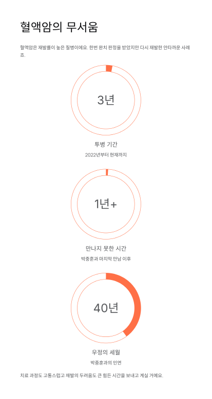 혈액암은 재발률이 높은 질병이에요. 한번 완치 판정을 받았지만 다시 재발한 거죠. 암 투병이 쉽지 않다는 걸 보여주는 안타까운 사례예요.