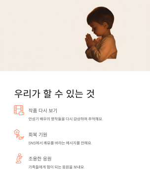 저도 안성기 배우 영화를 정말 많이 봤어요. '투캅스'는 지금 봐도 재밌고, '라디오 스타'는 정말 명작이죠. 그런 연기를 보여주신 분이 지금 투병 중이라는 게 너무 안타까워요.