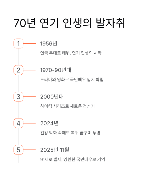 2025년 11월 25일 새벽, 이순재 선생님이 91세로 조용히 눈을 감으셨어요. 지난해 건강이 나빠지신 뒤에도 복귀를 꿈꾸며 병원에서 치료를 받으셨지만, 끝내 우리 곁을 떠나셨죠.
