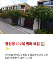 걸그룹 아이브(IVE)의 멤버 장원영이 137억 원짜리 한남동 빌라를 매입했다는 소식! 전액 현금이라는데, 도대체 어떻게 가능한 걸까요? 🤔