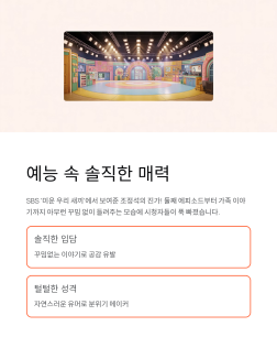 SBS ‘미운 우리 새끼’ 등 다양한 예능에서 보여준 조정석의 매력은 바로 솔직한 입담과 털털함! 둘째를 갖게 된 에피소드, 가족과의 에피소드까지 아무런 꾸밈 없이 들려주는 모습에 시청자들도 푹 빠질 수밖에 없죠. 자연스러운 유머로 녹화 내내 분위기를 이끌며 사랑받았습니다.