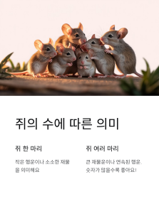 쥐 여러 마리: 큰 재물운이나 연속된 행운을 뜻해요. 숫자가 많을수록 좋답니다.