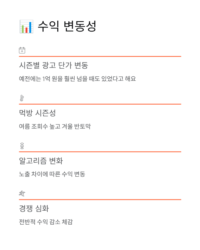 월 1억을 벌어도, 1270만 구독자를 보유해도 여전히 숫자에 민감할 수밖에 없는 게 유튜버의 현실이에요. 쯔양도 "예전에는 1억 원을 훨씬 넘을 때도 있었다"고 하면서 최근 광고 단가 하락과 경쟁 심화를 체감하고 있다고 했어요.