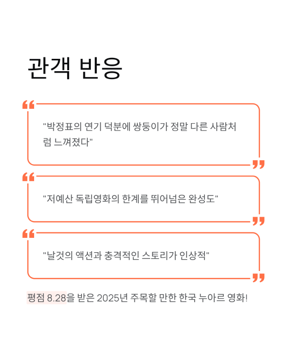 2025년 6월 개봉한 '천국은 없다'가 평점 8.28로 관객들의 뜨거운 호평을 받고 있어요. 박정표의 1인 2역 연기와 충격적인 스토리로 화제가 된 이 영화, 일란성 쌍둥이 형제의 비극적 운명을 다룬 액션 누아르인데요. 쌍둥이 중 한 명이 죽어야만 다른 하나가 살 수 있다면, 여러분은 어떤 선택을 하시겠어요?