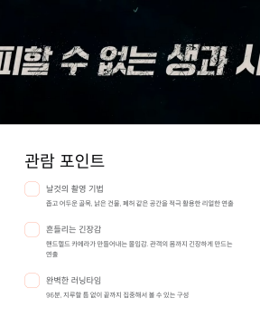 좁고 어두운 골목과 낡은 건물, 폐허 같은 공간을 적극 활용한 촬영 기법도 관람 포인트예요. 흔들리는 핸드헬드 카메라가 만들어내는 날것의 긴장감은 관객의 몸까지 긴장하게 만들죠. 러닝타임 96분이라 지루할 틈 없이 끝까지 집중해서 볼 수 있어요!