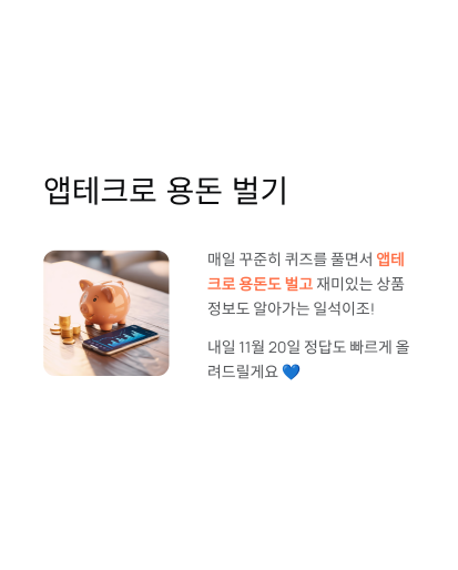 오늘 퀴즈 모두 맞추셨나요? 공감 버튼 꾹 눌러주시고, 댓글로 여러분의 앱테크 노하우도 공유해주세요! 💙