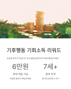 기후동행은 단순한 퀴즈 앱이 아니에요. 탄소중립 실천으로 리워드를 받을 수 있는 프로그램입니다. 최대 6만 원까지 적립 가능하니 꾸준한 참여가 핵심이에요!