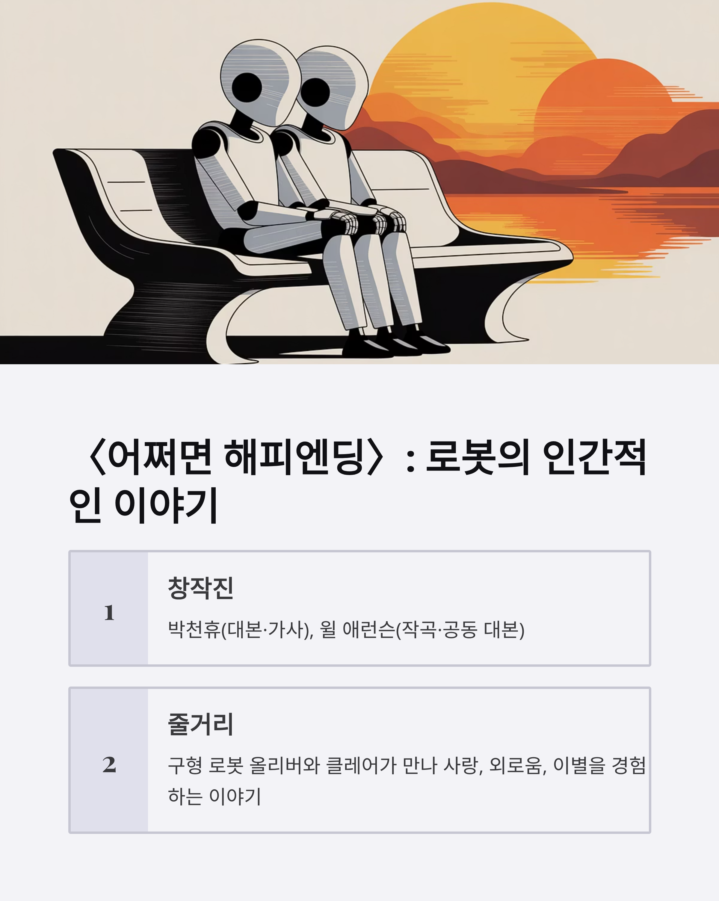 - 〈어쩌면 해피엔딩〉: 구형 로봇들의 사랑과 이별을 다룬 따뜻하고 철학적인 창작뮤지컬, 해외 진출에도 성공