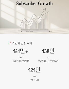- KT: 3월 4.4만명 → 5월 138만명 (3,000% 증가!)
