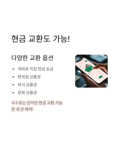 가장 놀라운 건 현금 교환도 가능하다는 거예요! 코인을 모아서 계좌로 직접 송금받을 수 있어요. 물론 수수료가 조금 있지만, 현금으로 바꿀 수 있다는 게 큰 매력이죠. 편의점 상품권, 외식 상품권, 문화 상품권 등 선택의 폭이 정말 넓답니다!