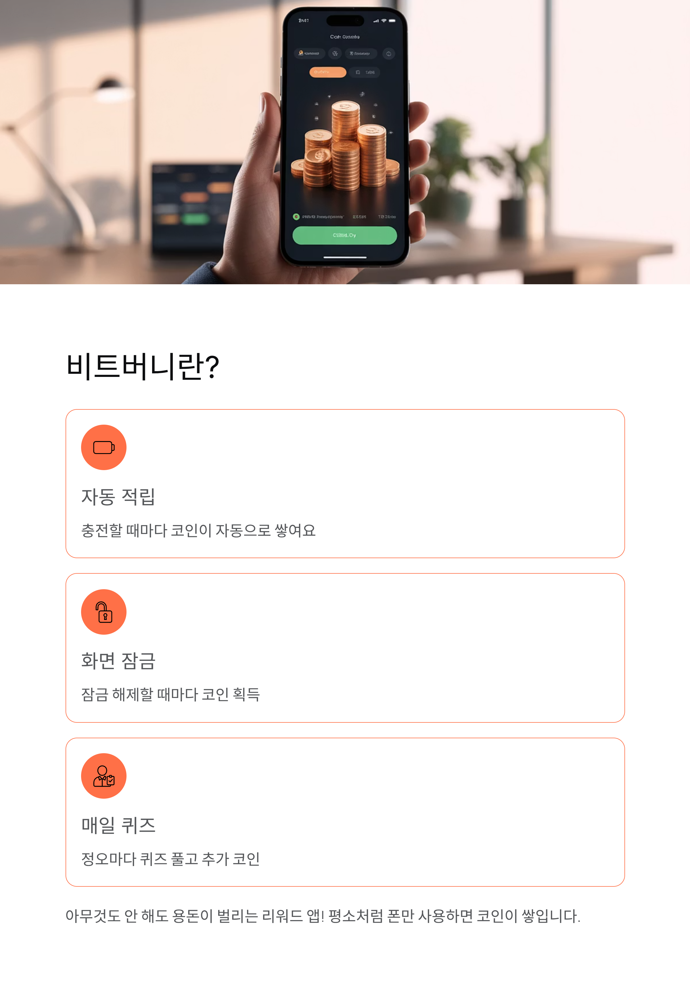 • 자기 전 폰 충전하면서 코인 쌓기
