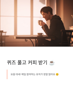 요즘엔 ‘퀴즈 풀고 커피 받기’가 대세라 그런지 매일 참여하는 유저가 정말 많아요 ☕😊