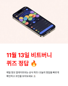 👉 다음 글 예고 : 11월 14일 비트버니 퀴즈정답 모음