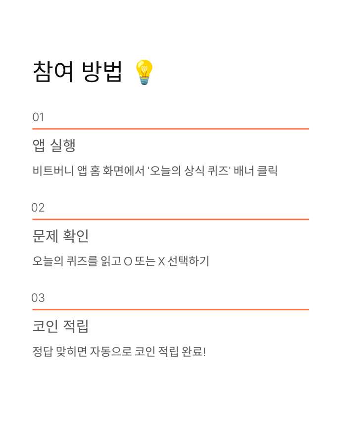 1️⃣ 비트버니 앱을 실행하고 홈 화면의 ‘오늘의 상식 퀴즈’ 배너를 눌러요.