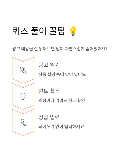 문제들을 보면 상품 설명 속에 자연스럽게 답이 숨어있어요! 광고 내용을 잘 읽어보면 쉽게 맞출 수 있답니다 🔍
