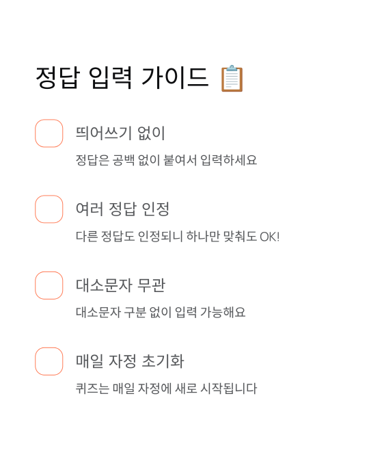 - 퀴즈는 매일 자정에 초기화됩니다