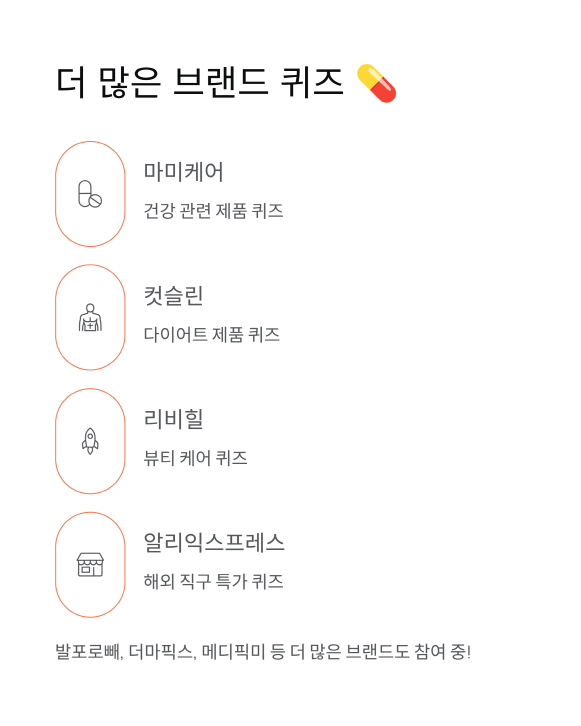 그 외에도 알리익스프레스, 발포로빼, 더마픽스, 메디픽미 등 다양한 브랜드 퀴즈가 진행되고 있어요!
