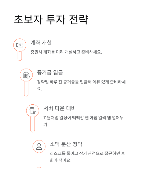 공모주가 처음? 증권사 계좌부터 개설하고, 증거금은 청약일 하루 전 입금하세요. 11월처럼 일정이 빽빽할 땐 서버 다운 대비로 아침 일찍 앱 열어두는 게 좋아요. 소액 분산 청약으로 리스크 줄이고, 장기 관점에서 접근하면 후회 적어요!