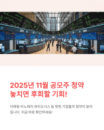 2025년 11월은 더메핑, 이노테리, 큐리오시스 등 핫한 기업들의 공모주 청약이 쏟아지는 달이에요. 초보자도 쉽게 따라할 수 있는 일정과 팁을 한눈에 정리했어요. 이 기회를 놓치면 후회할지도? 지금 확인해보세요!