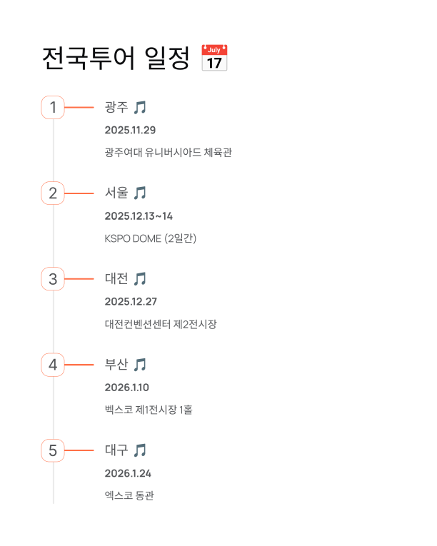 11월 말부터 내년 1월까지 진행되니까 원하시는 도시와 날짜를 미리 체크해두세요. 단독 판매로 진행되는 만큼 예매 정보를 놓치지 않는 게 중요하고, 티켓팅 준비를 철저히 하셔야 해요.