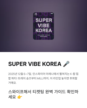 IDOL RADIO Special : SUPER VIBE KOREA는 2025년 12월 6~7일 인스파이어 아레나에서 열리는 K-팝 힙합 콘서트예요. 라인업부터 티켓팅 팁까지 완벽 가이드! 트레이 송즈부터 MILLI까지 이 라인업 보시면 예매 안 하면 후회할 텐데?