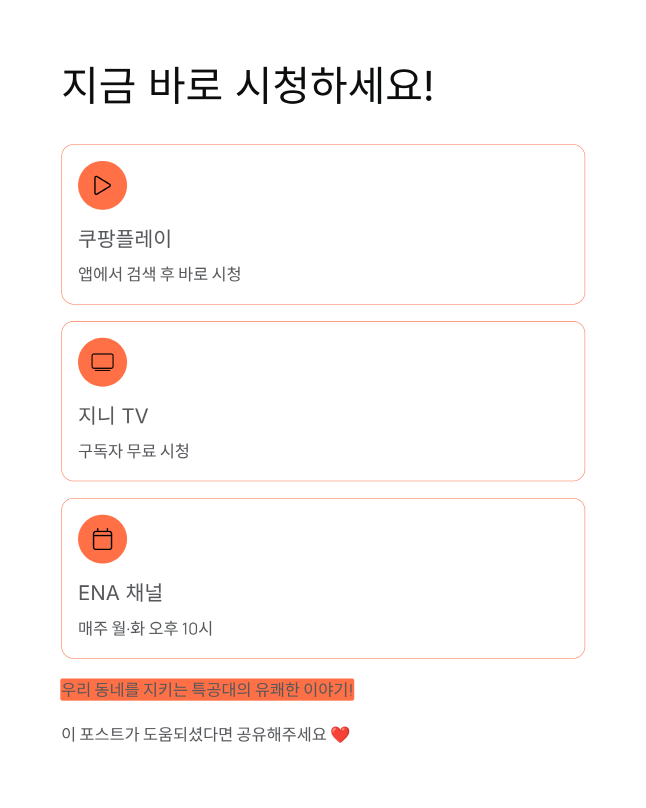 다음 글에서는 UDT 우리 동네 특공대 회차별 줄거리를 정리해드릴게요. 기대해주세요! 📺
