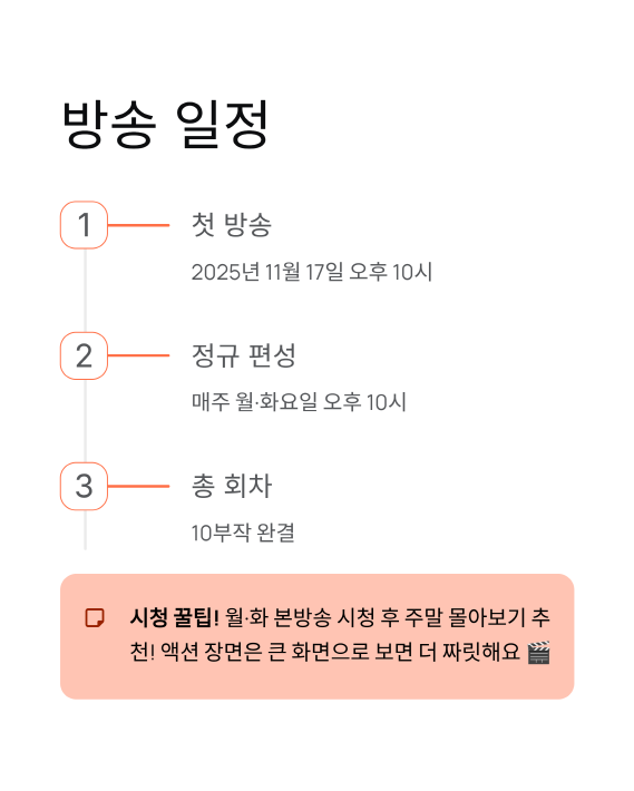 월·화 밤 10시에 본방송을 보고, 주말에 몰아보기로 복습하는 것도 좋아요. 액션 장면은 큰 화면으로 보면 더 박진감이 넘친답니다!