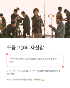 '우리가 만난 기적', '저스티스', '정숙한 세일즈' 등을 연출한 조웅 PD가 처음으로 OTT 작품에 도전했어요. 조웅 PD는 "캐릭터의 궁합이 굉장히 중요한 작품이며, 최고의 조합이 나왔다"고 자신했답니다!